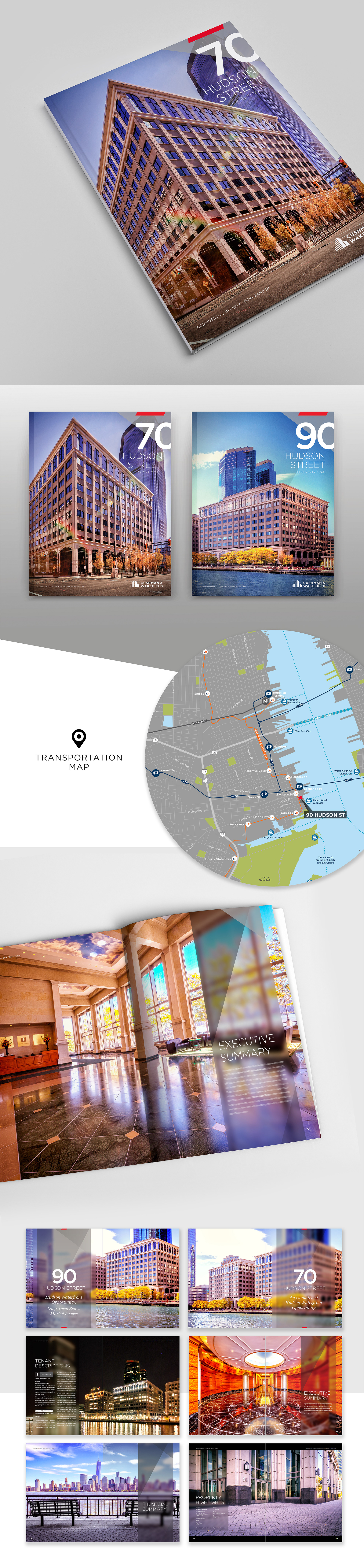Designed two offering memorandums for 70 & 90 Hudson. Retouched photographs and created a transportation map.